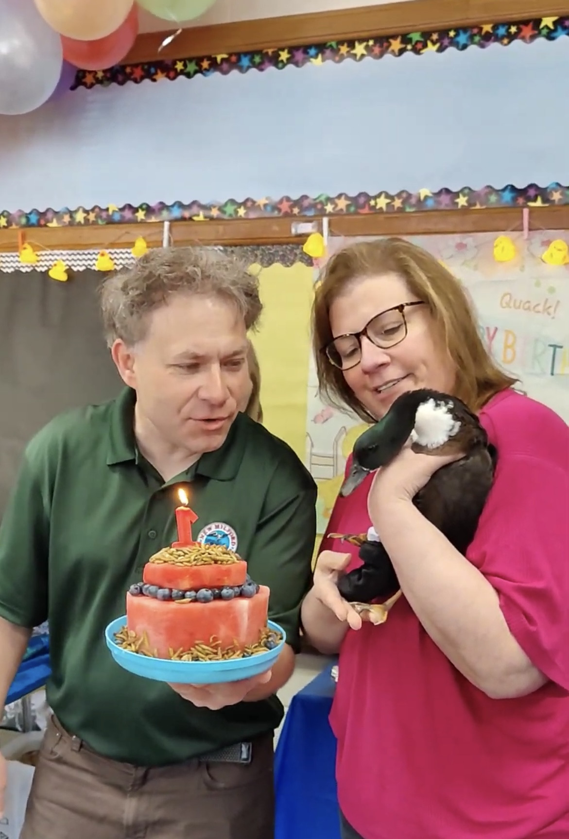 27 yrs! We have a diapered pet therapy educational duck and 2 bunnies and parrot at school through our rescue. Kids are kind and loving.