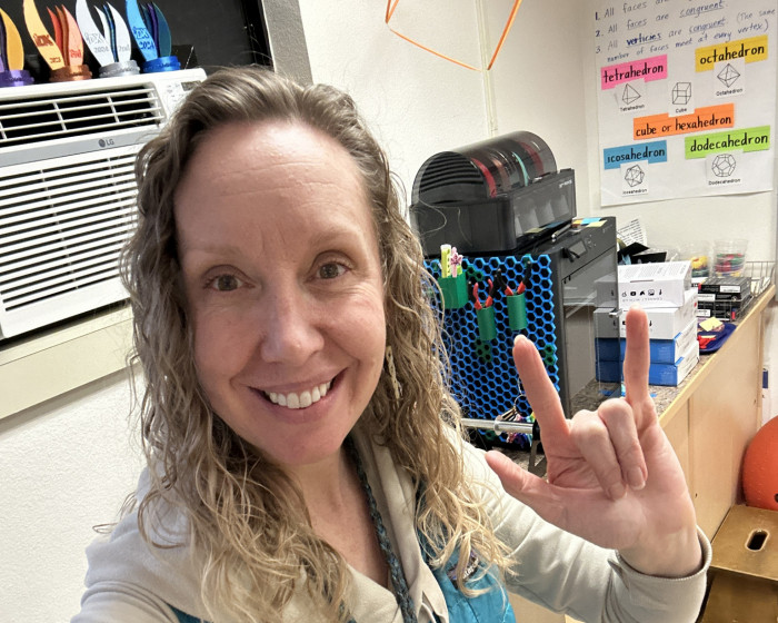 Tell us about your most memorable teaching experienceIn 2024 I worked with a group of incredible 5th grade students on a 6-week student-led 3D printing and design project. One of my students had a dog named Buddy who had become ill because he ate too quickly. My student team met with a local vet, and later designed a custom slow-feeder bowl for Buddy that had multiple inserts. The bowl more than tripled Buddy's eating time! Helping to solve this real-world problem was even better than the cash award they won at the regional competition.