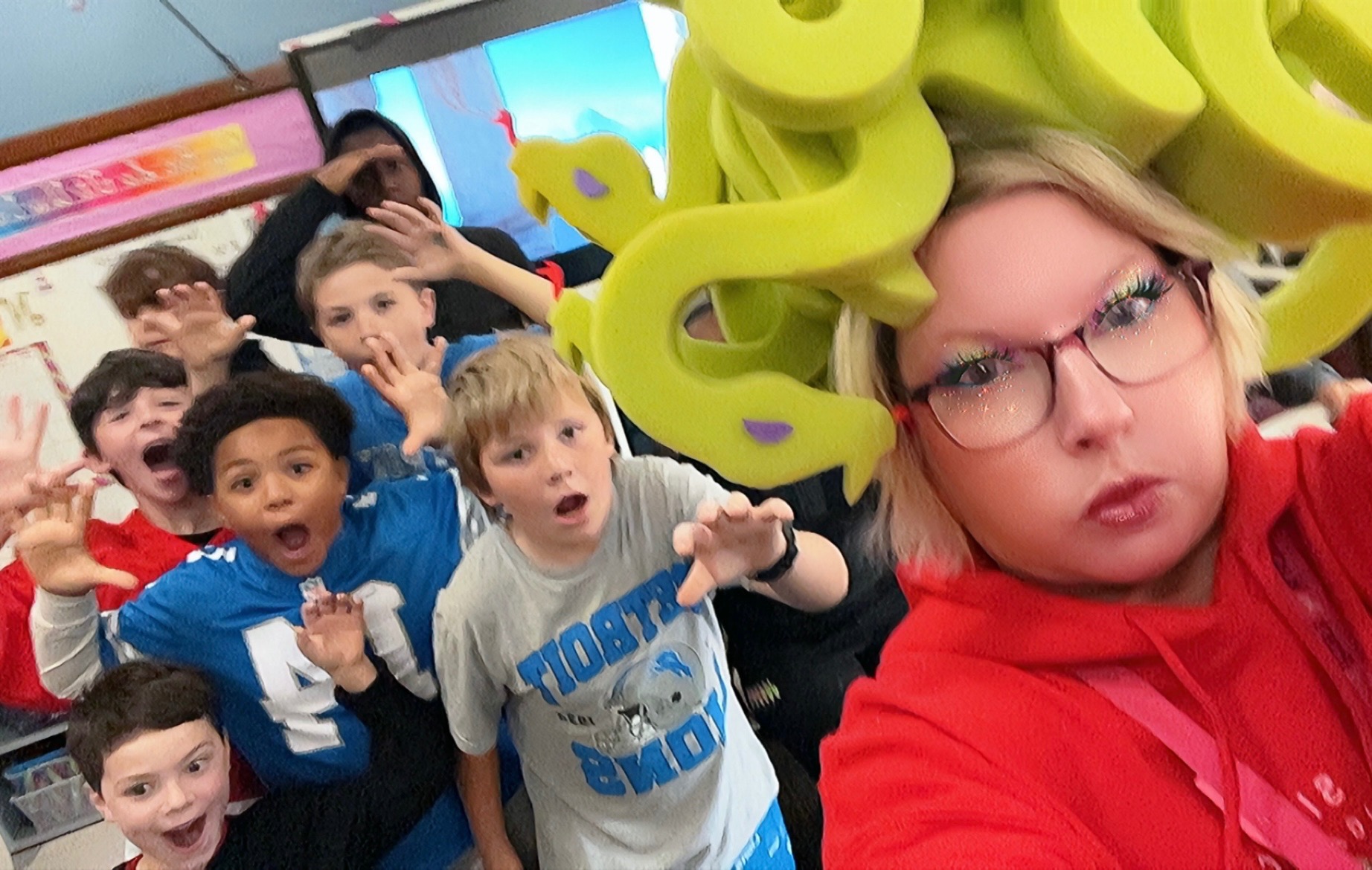 I have been teaching for 32 years and each year is a new adventure with my 4th grade kiddos. I love to make learning fun! Dressed as Medusa