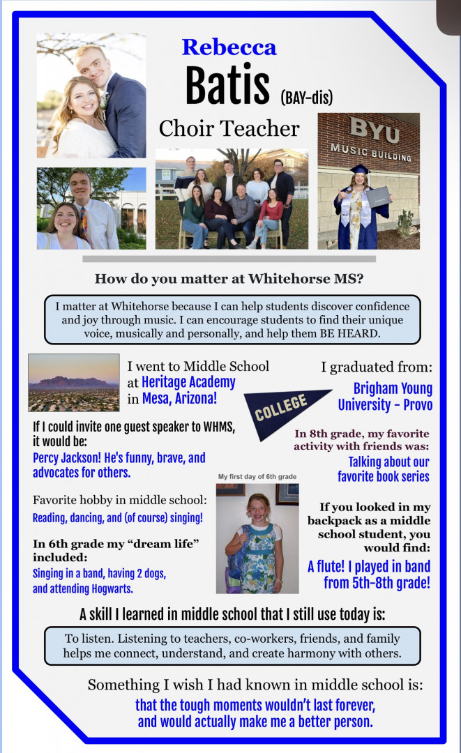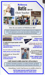Tell us about your most memorable teaching experienceI’m a choir teacher, so most of my classes are spent singing, analyzing music, and making connecting to other cultures and people around us. When I was teaching “Dona Nobis Pacem” (a classic round that translates to “grant us peace”), we discussed in classes how even though this song was an old prayer to God, we can also interpret it as us, the singers, pleading with those listening to choose to be peacemakers. It was a powerful message that we are looking forward to performing at our concert.
